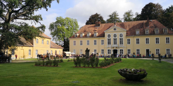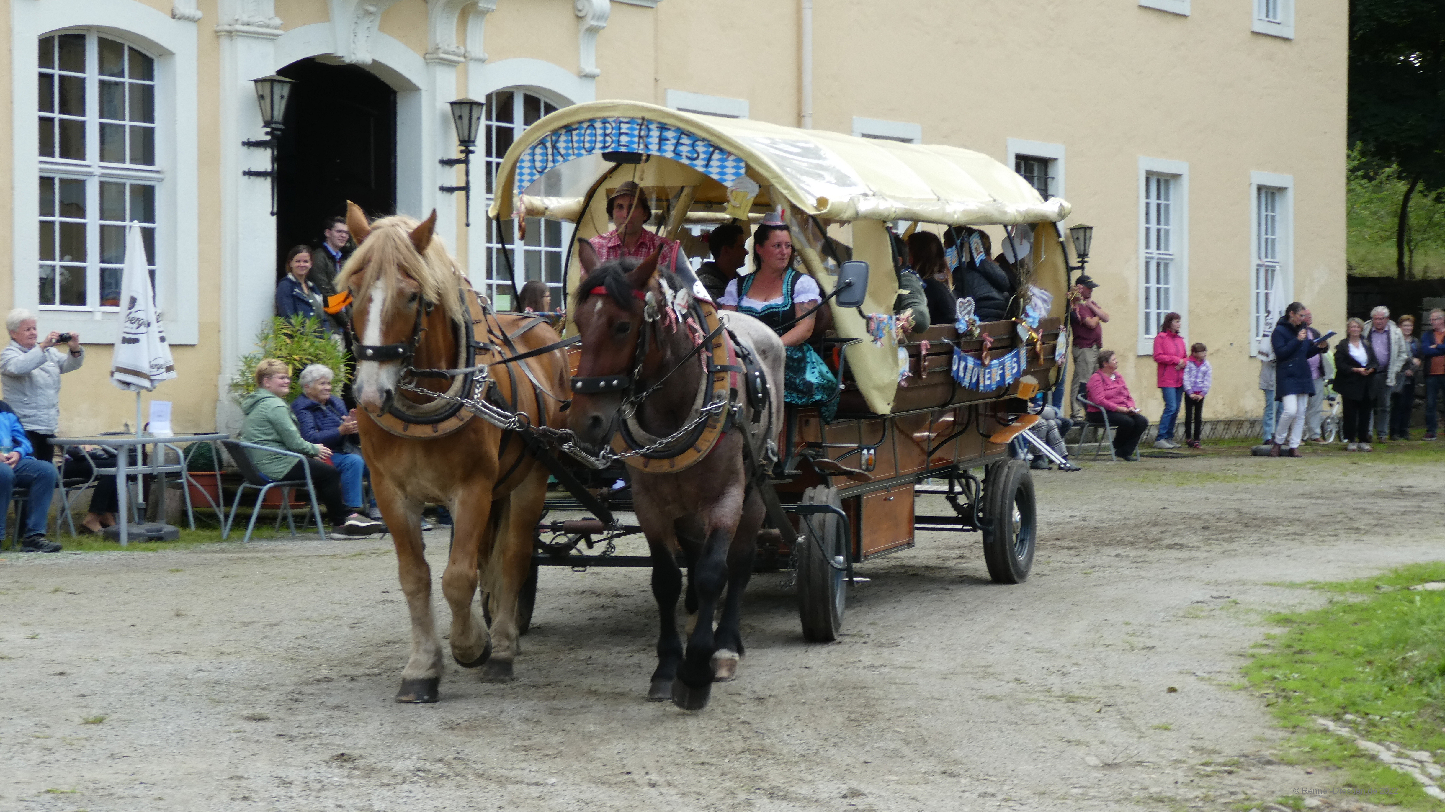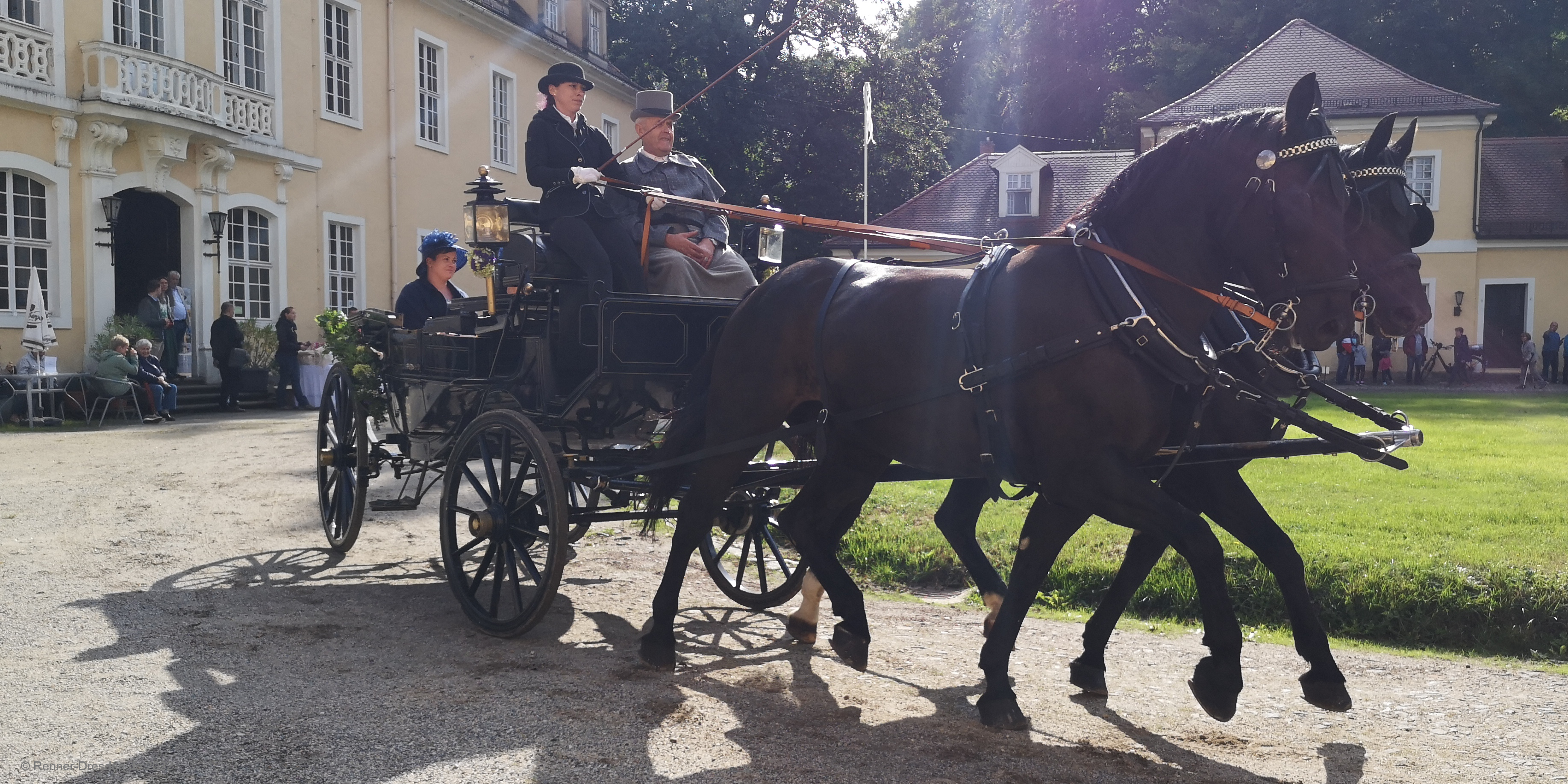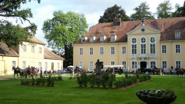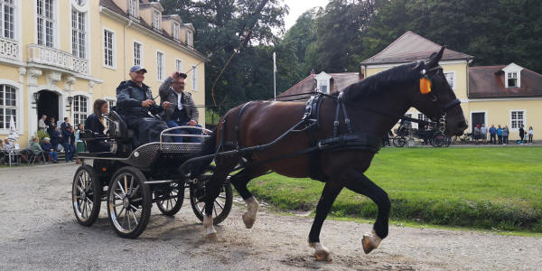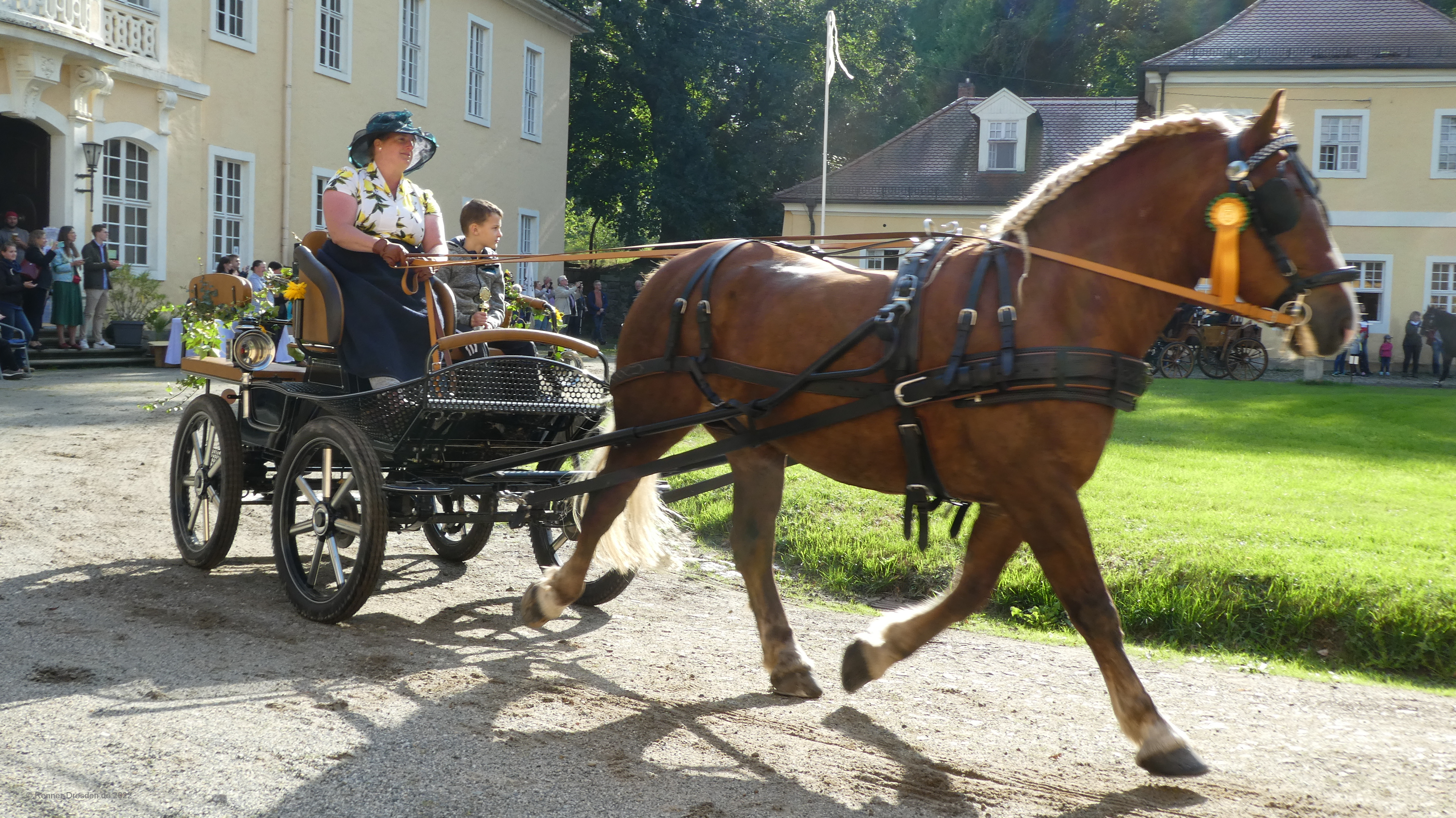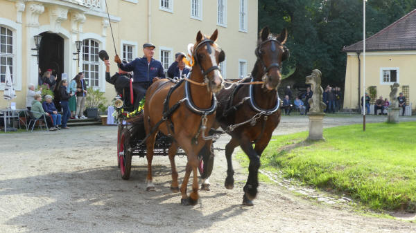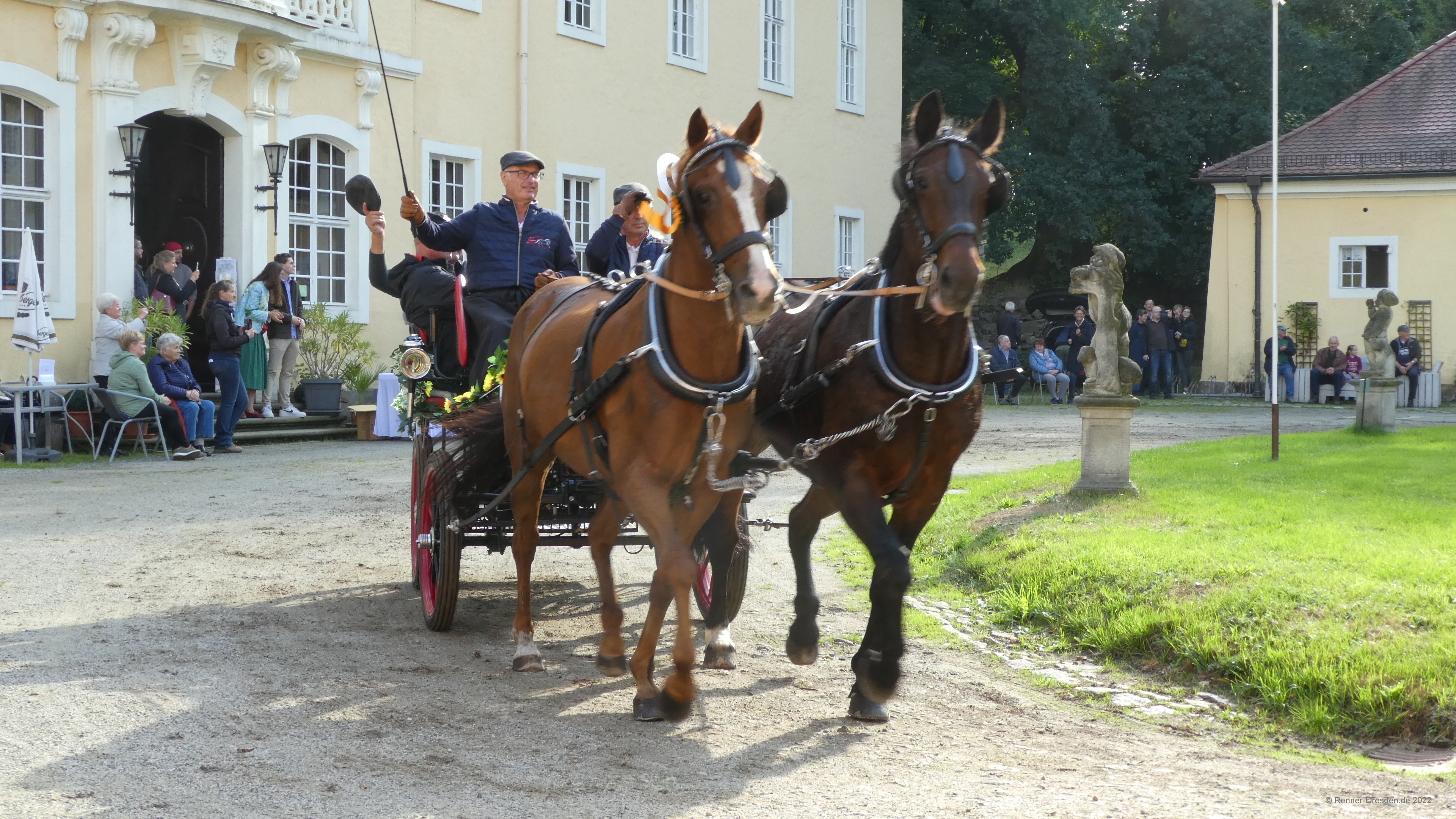 Zieleinfahrt, Siegerehrung und Ehrenrunde im Barockschloss Oberlichtenau