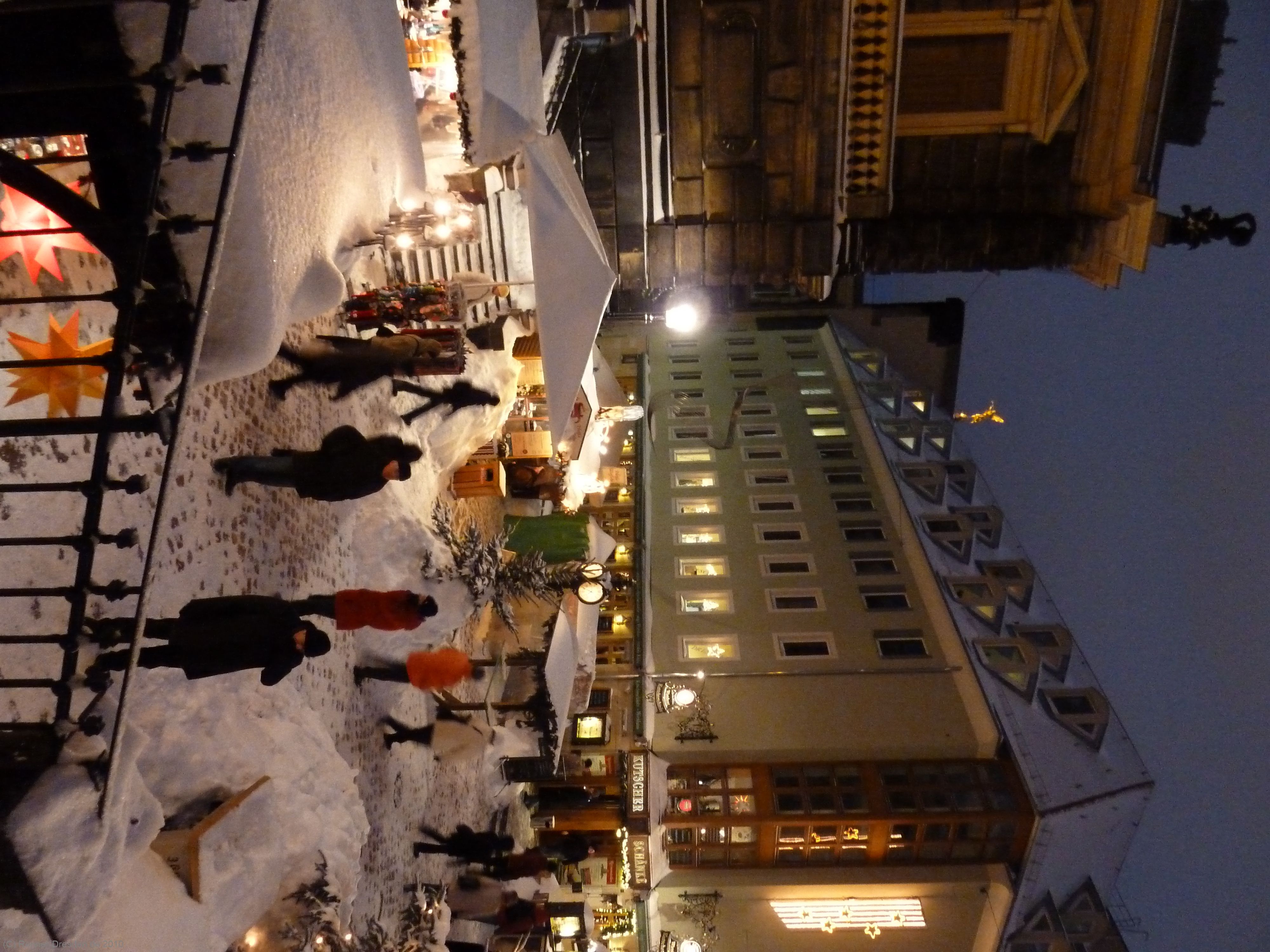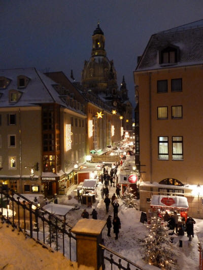 Ein Spaziergang über die verschneiten Weihnachtsmärkte und die Brühlsche Terrasse an einem kalten Winterabend im Dezember 2010.