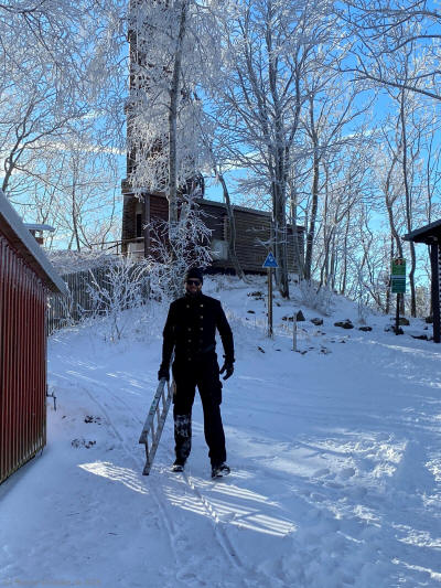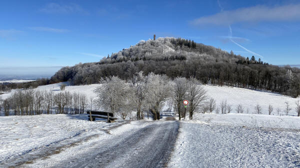 Der Zugang zum Turm, im Winter