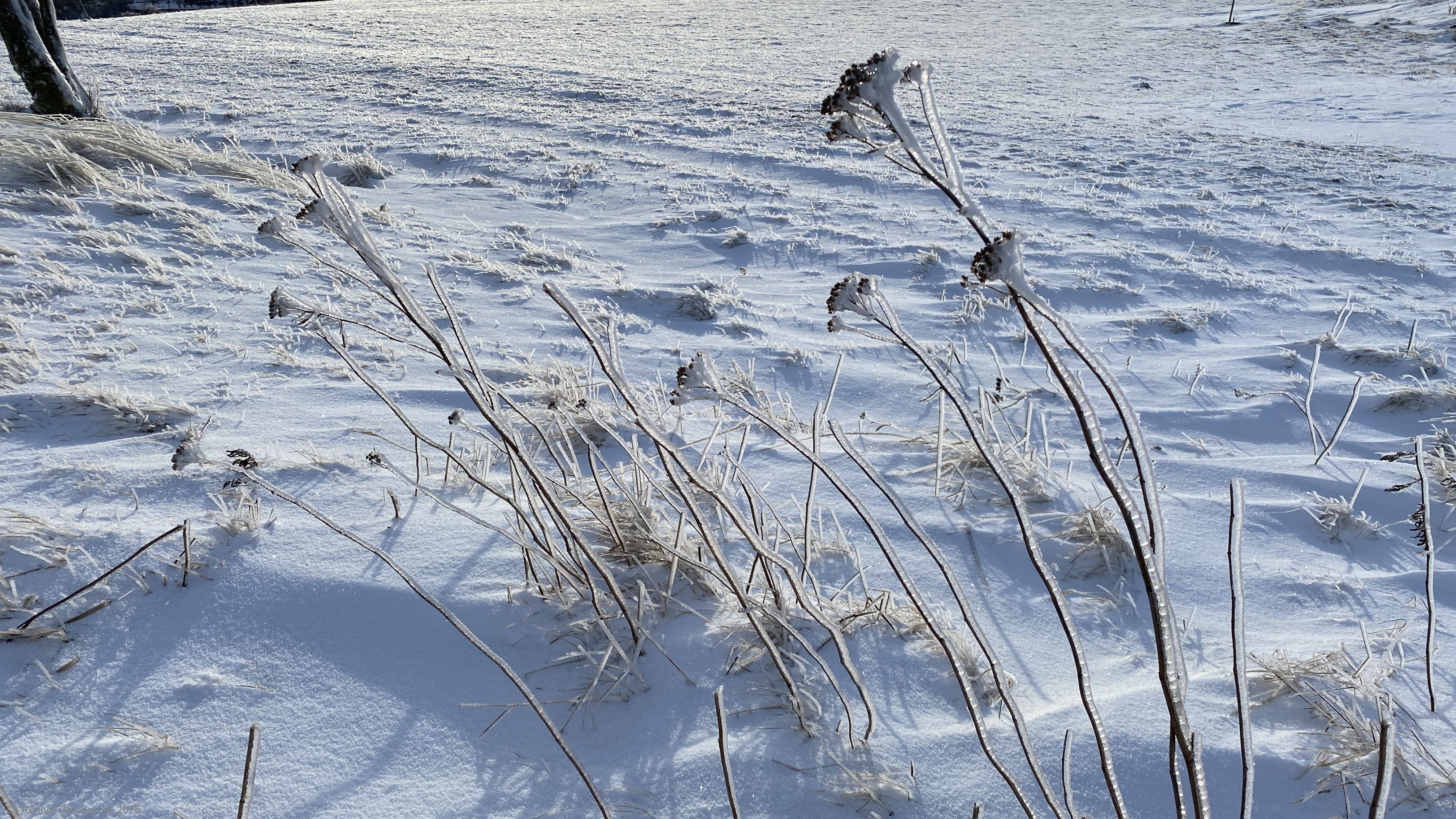 Pflanzen mit Eis überzogen. |