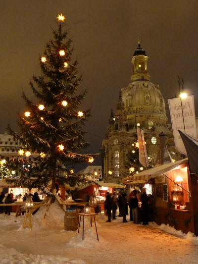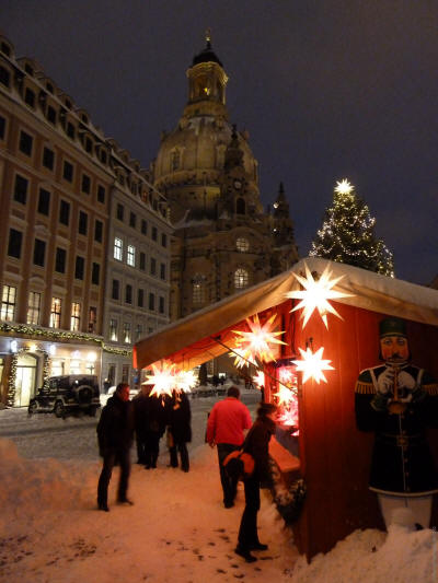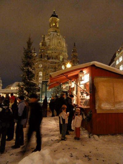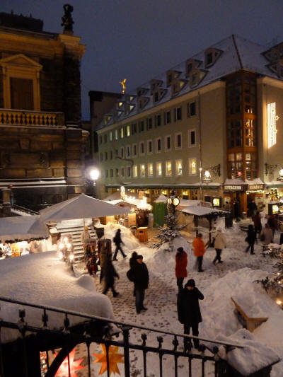 Ein Spaziergang über die verschneiten Weihnachtsmärkte und die Brühlsche Terrasse an einem kalten Winterabend im Dezember 2010.
