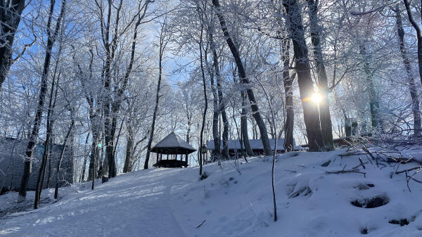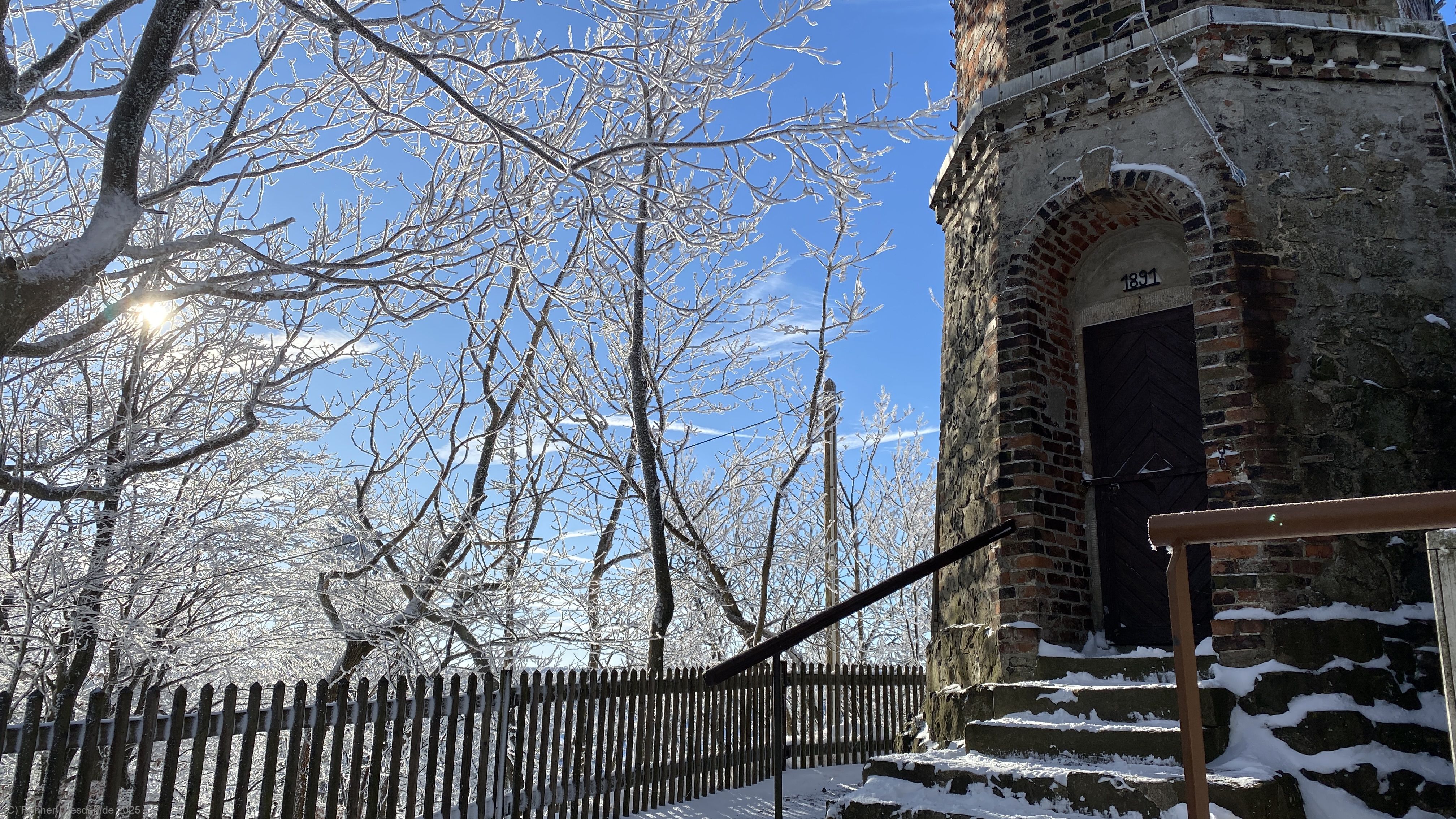 Der Zugang zum Turm, im Winter