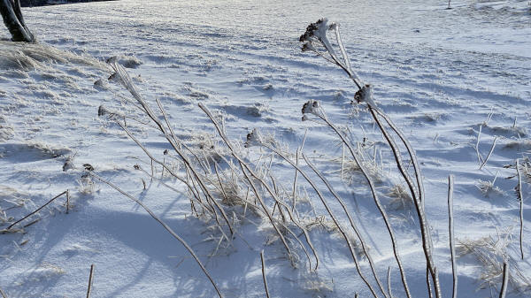 Pflanzen mit Eis überzogen. |