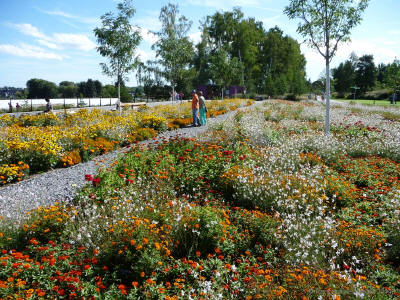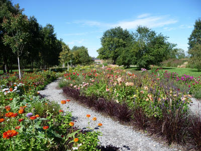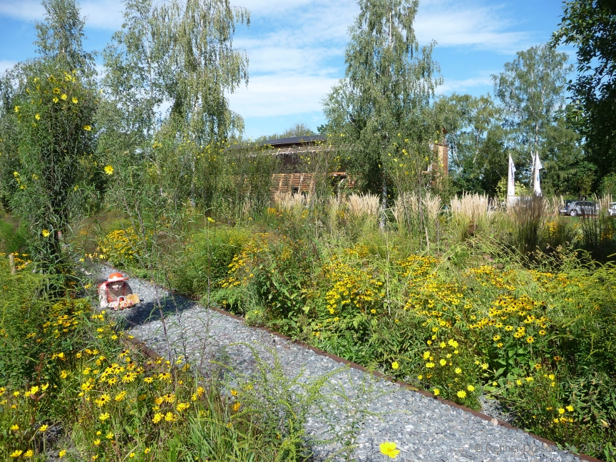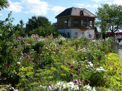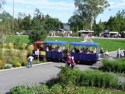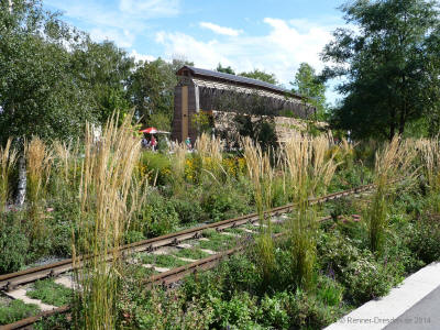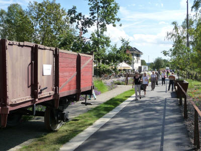 Verwandlung eines ehemaligen Güterbahnhofes in eine blühende Landschaft, eine Gartenschau bei der Eisenbahn- und Blumenfreunde zur ihrem Recht kommen.