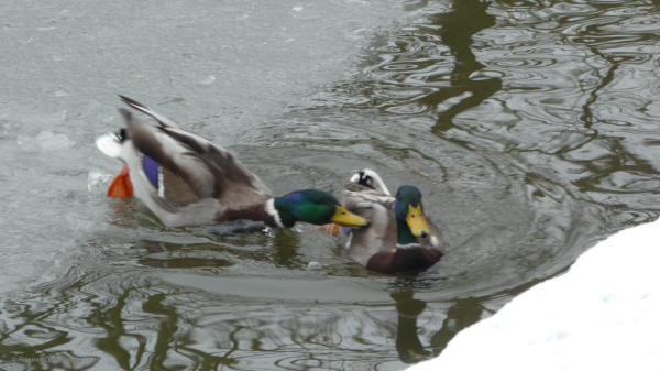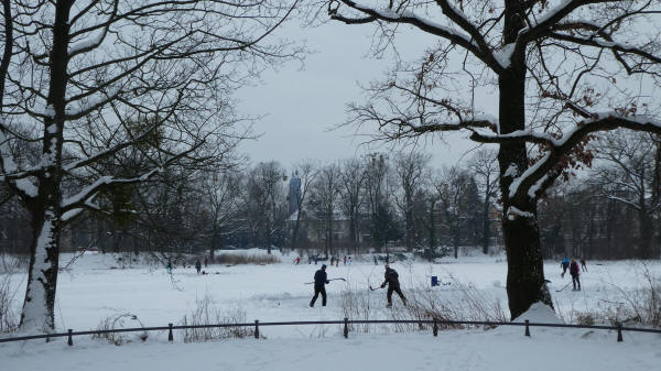 Eiskockey auf dem Carolasee, nicht ganz ungefährlich.