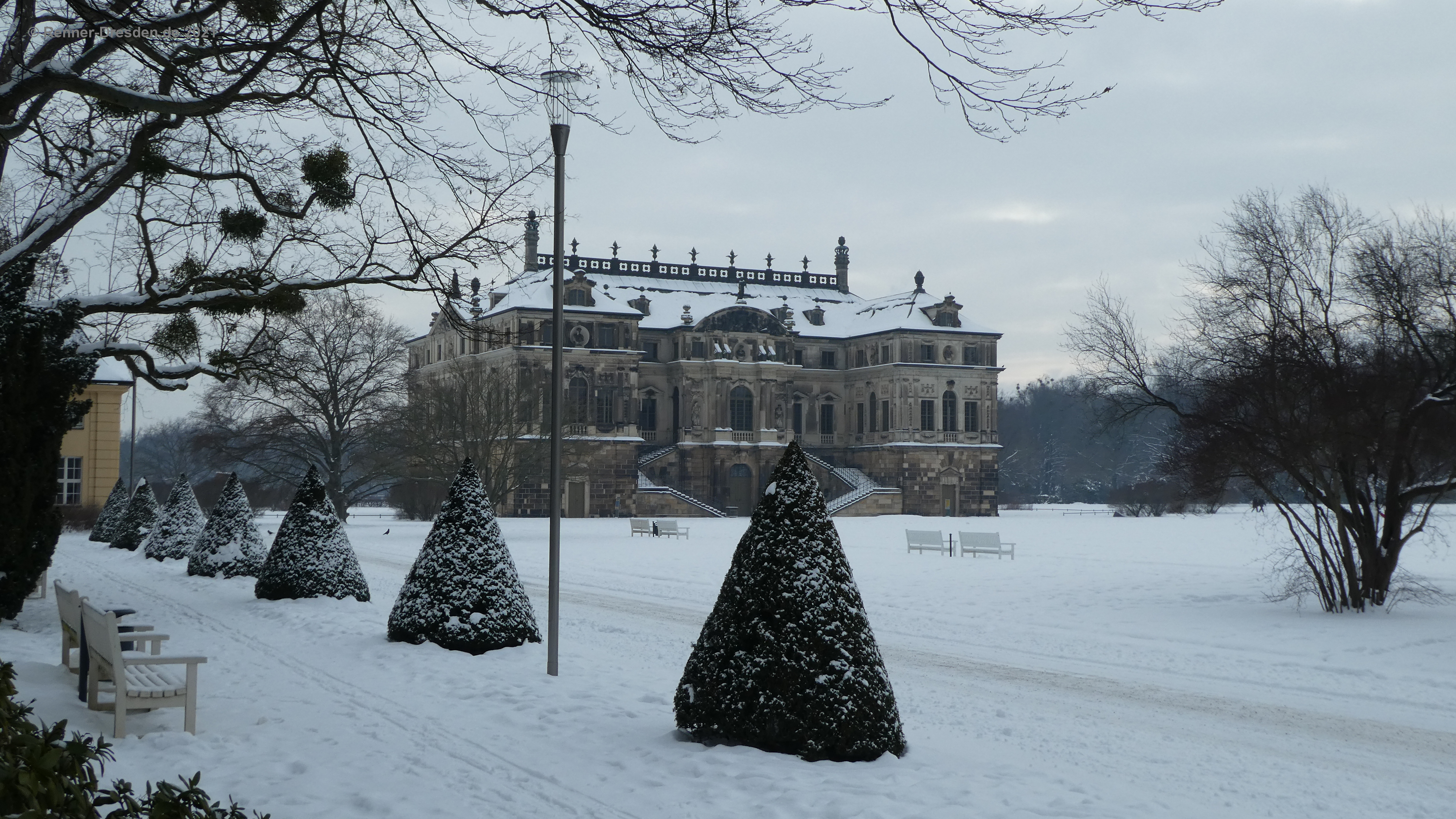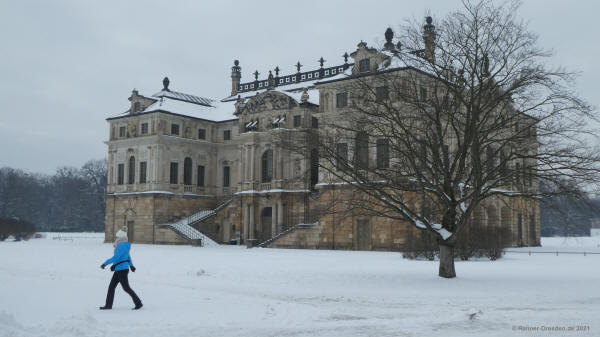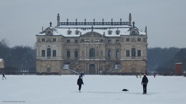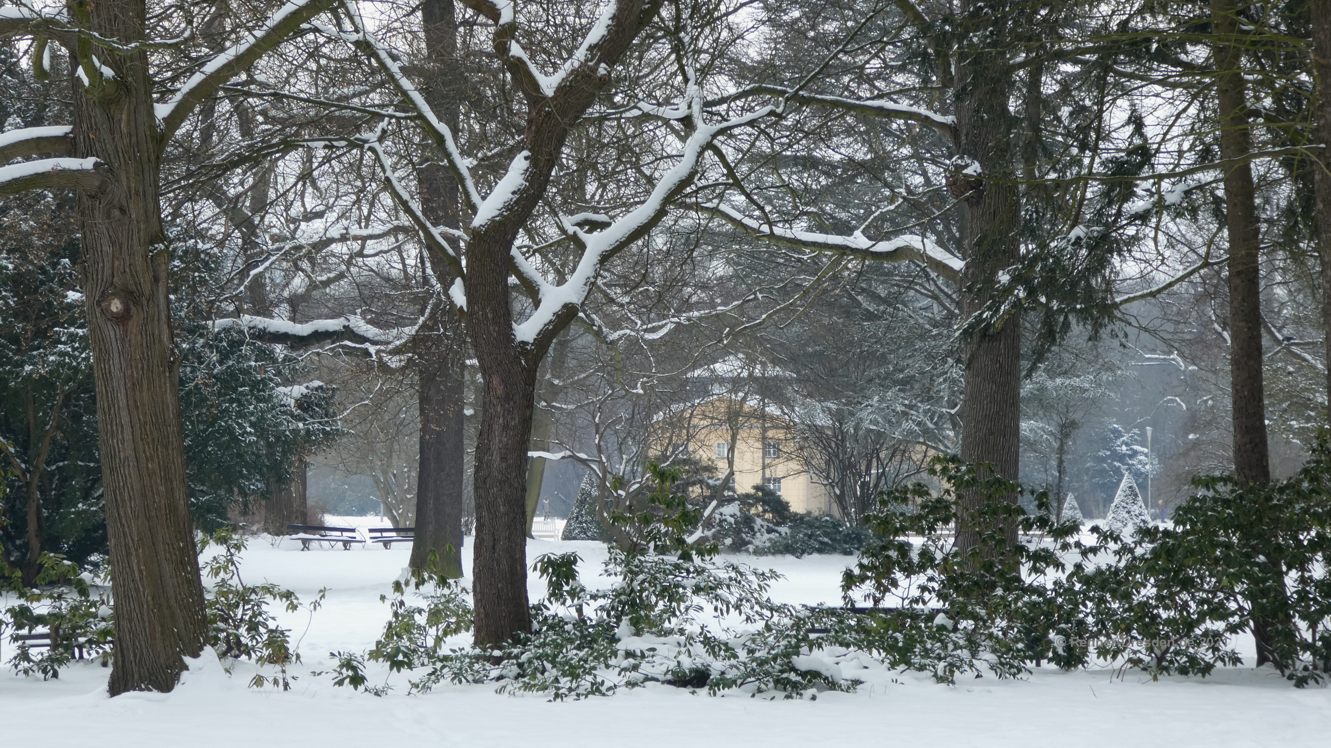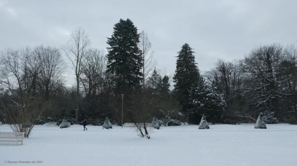 16.02.2021 Großer Garten Dresden, nach einigen Zentimetern Neuschnee. Der angekündigte Regen dauerte nur wenige Minuten und konnte dem Schnee noch nichts anhaben. Auch ohne Sonne ein sehr schöner Spaziergang.